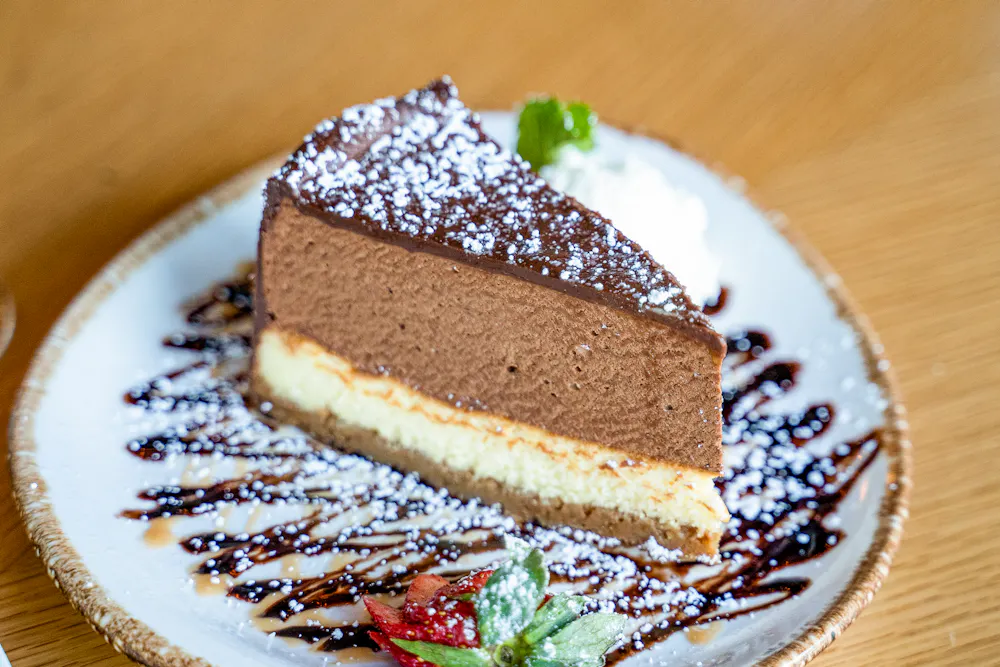 For chocolate lovers, the Chocolate Mousse Cheesecake is a must-try. Creamy chocolate mousse layered over rich cheesecake and topped with Belgian chocolate creates a dessert that is both visually appealing and full of flavor. Every bite combines light mousse with dense cheesecake, making it a favorite for birthdays, gatherings, or personal indulgence.